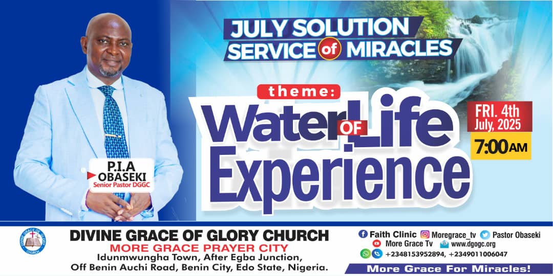 Join us for an extraordinary Solution Service dedicated to seeking divine Water of Life Experience and favour through prayer battles and experiencing profound spiritual breakthroughs. This event is designed to uplift, inspire, and bring God’s abundant blessings into your life.